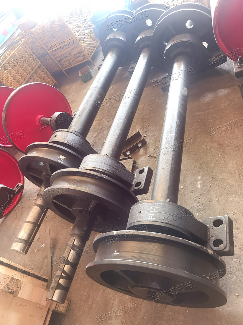 行走輪分單輪沿與雙輪沿,可根據客戶需求定制,一般500-800帶寬的卸料車可用直接500的車輪,1000-1400帶寬的卸料車用直徑630的車輪。輕型可逆配倉采用直徑300的車輪,重型可逆配倉采用直徑350的車輪。